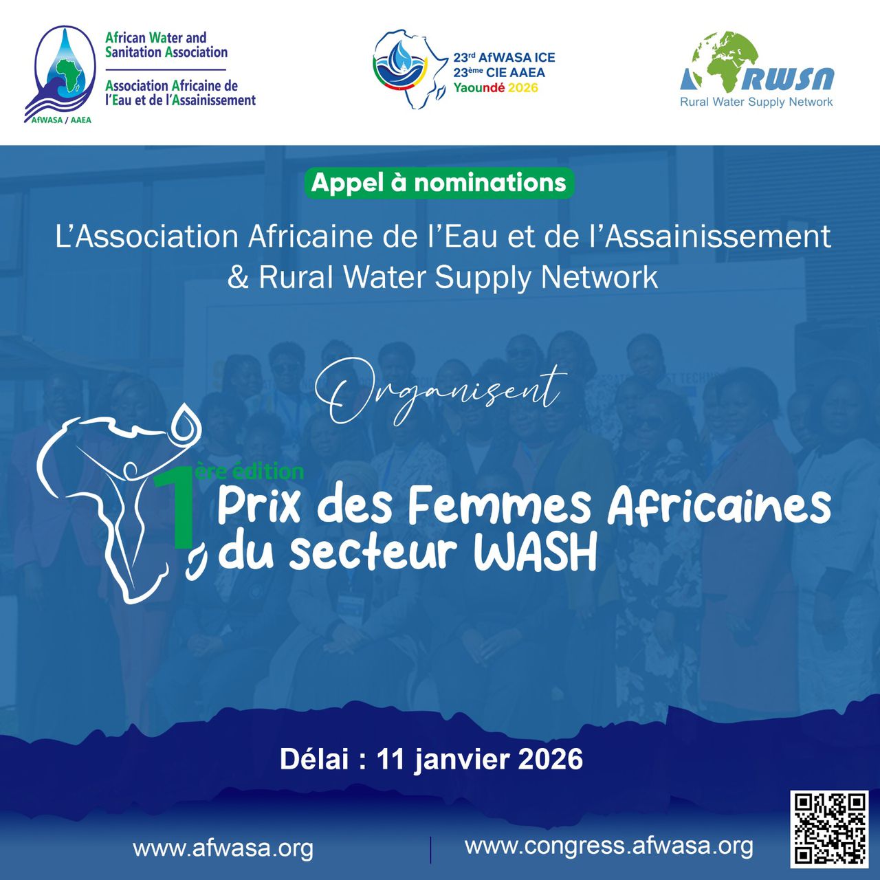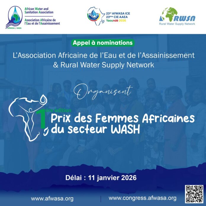 Association africaine de l’eau et de l’assainissement (AAEA) et le Rural Water Supply Network (RWSN) annoncent le lancement de la première édition du Prix des Femmes Africaines du secteur WASH, une initiative continentale dédiée à la reconnaissance et à la valorisation du leadership féminin dans les domaines de l’eau, de l’assainissement et de l’hygiène (WASH).