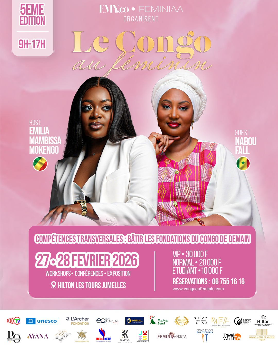 Porté par Emy & Co et l’association FEMINIAA, dirigés par Emilia Mambissa, Le Congo au Féminin bénéficie du soutien de nombreux partenaires nationaux et internationaux engagés pour le leadership féminin, l’autonomisation des femmes et le développement durable. Leur mobilisation renforce l’impact de l’événement et multiplie les opportunités offertes aux participantes.