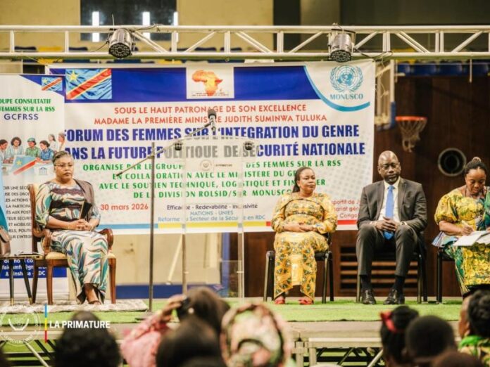 La Première ministre Judith Suminwa Tuluka a clôturé, le lundi 30 mars, à Kinshasa, le forum des femmes consacré à l’intégration de la dimension genre dans la future politique de sécurité nationale de la République démocratique du Congo.