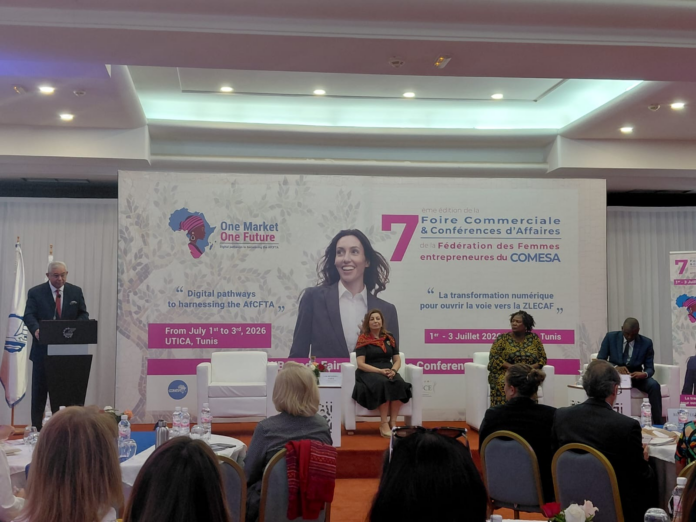 La conférence s’inscrit dans le cadre de la « COMESA Week 2026 » et est co-organisé par le Marché commun de l’Afrique orientale et australe, la Fédération des associations nationales des femmes entrepreneurs du COMESA (COMFWB) et la Chambre nationale des femmes chefs d’entreprises (CNFCE), rattachée à l’UTICA, sous le thème « La transformation numérique pour ouvrir la voie vers la ZLECAF ».